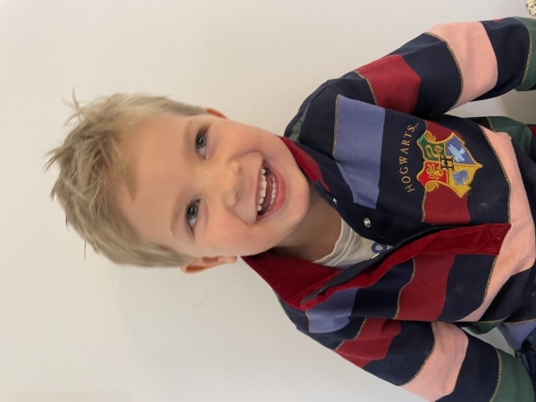 Clever, great chatter, can repeat any phrase, great laugh, full of fun, loves jumping on the trampoline, going to the playground and cycling his bike.
